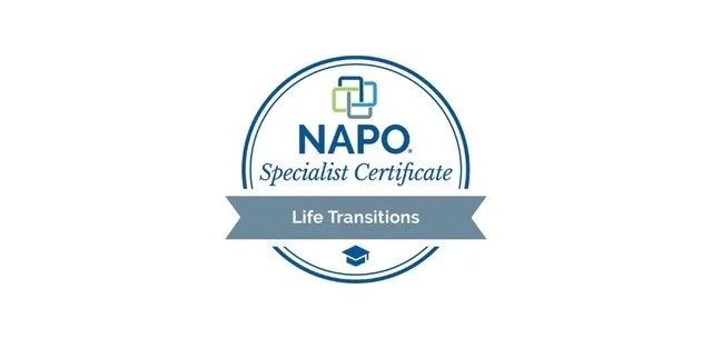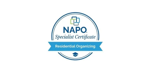 My Specialist Certificates from NAPO include: Residential Organizing, Household Management, Life Transitions, and Workplace Productivity.