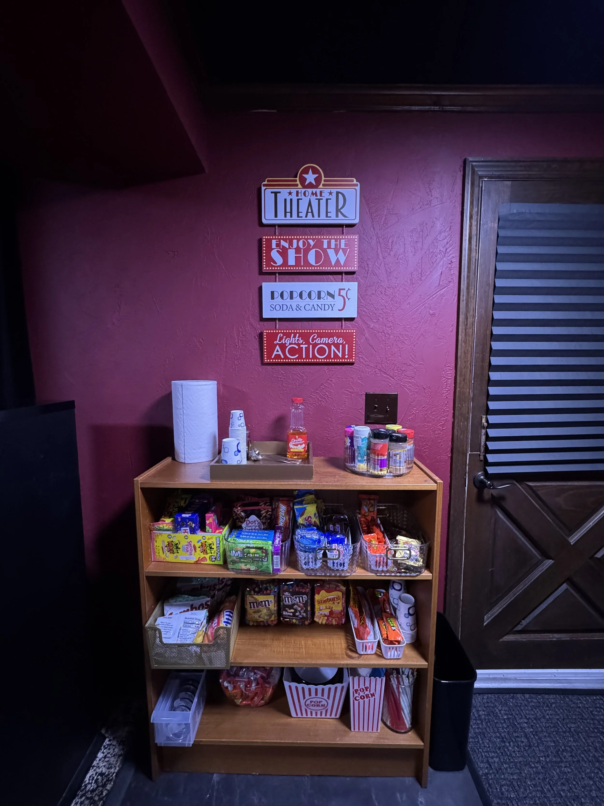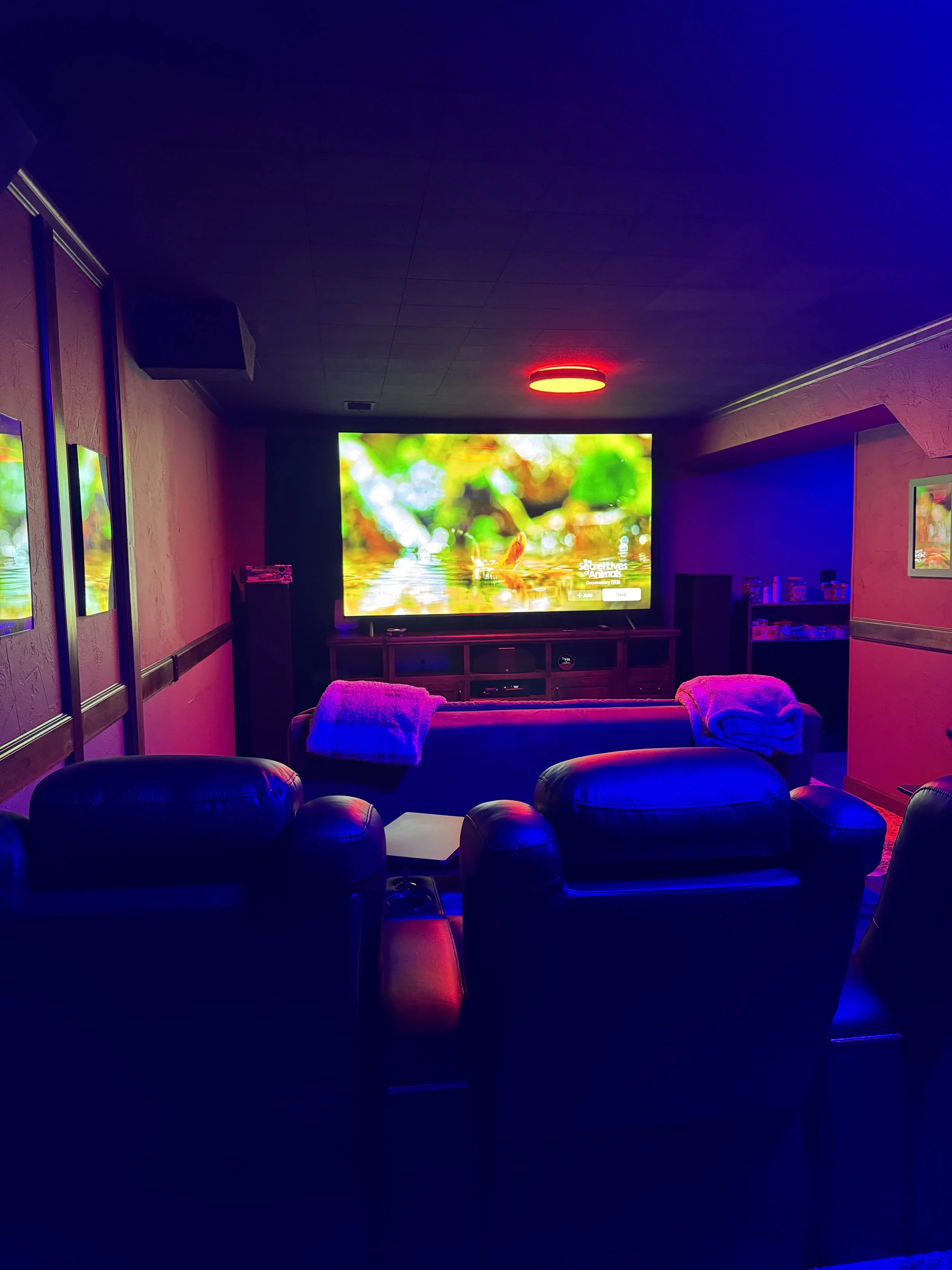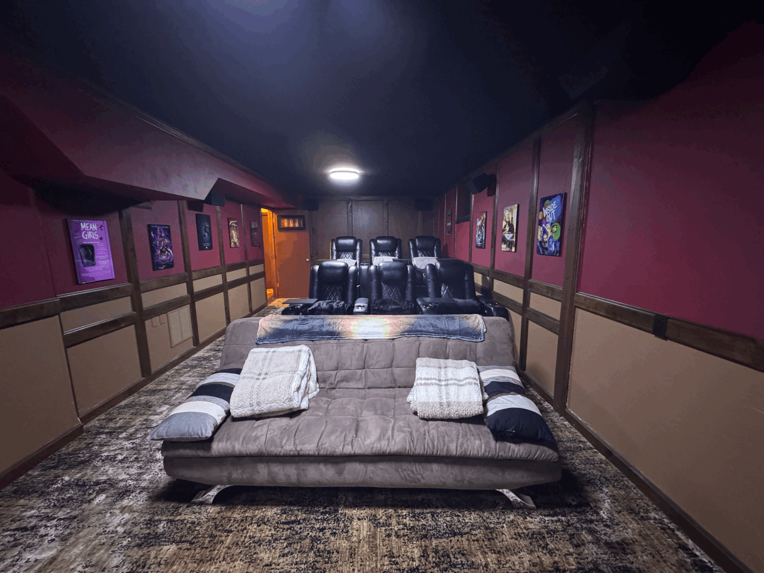 This project turned a crowded storage space, guest space, and play area into a luxurious theater room.