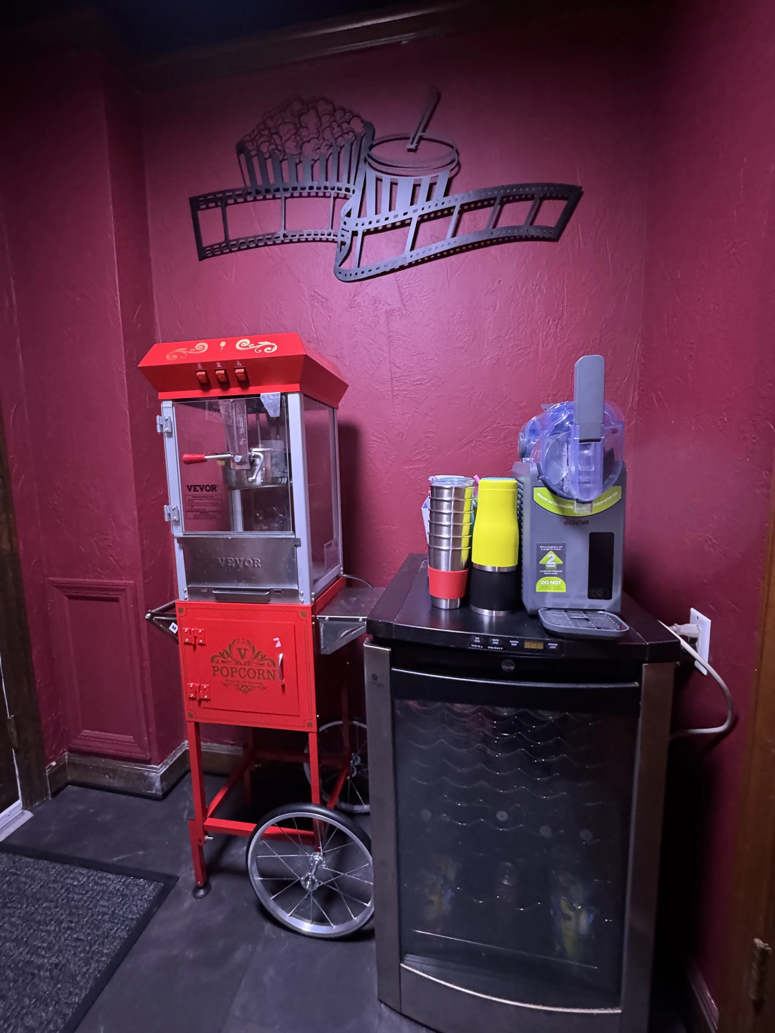 Complete with popcorn maker, slushy machine, drink fridge & snacks for every taste!
